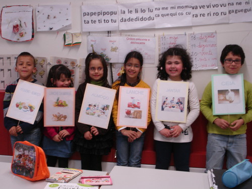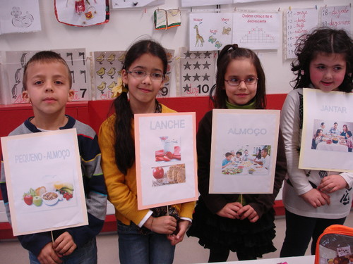 No âmbito do projeto "Educação para a Saúde", e desenvolvendo atividades na área da Educação Alimentar, a turma B2 do 1º ano realizou a atividade "Quantas refeições existem". Dialogamos sobre as refeições que se devem ter ao longo do dia e sobre a importância do pequeno almoço. Ficamos a saber que a ceia deve ocorrer se passarem mais de três horas e meia entre o jantar e a hora de deitar ou se passarem mais de dez horas entre a última refeição do dia e a primeira do dia seguinte.