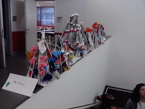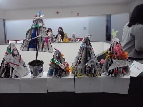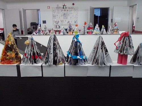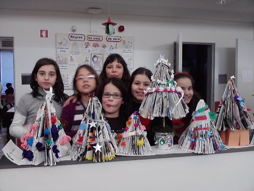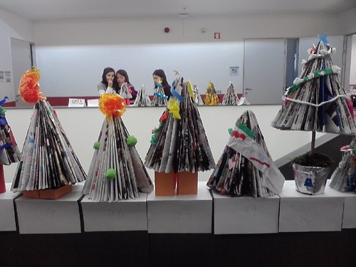 As turmas do 3º ano construíram árvores de Natal com mensagens alusivas a este tema.
