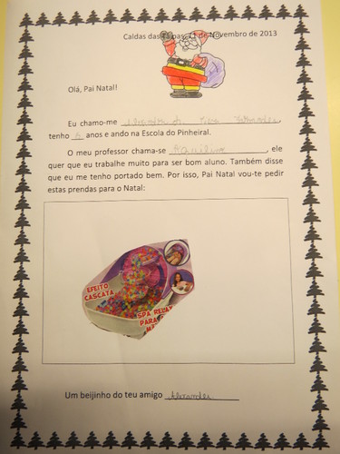 Os alunos da turma C1 já escreveram a carta ao Pai Natal dos CTT. Como o Pai Natal recebe muitas cartas, vai demorar um bocado a responder. Por isso, escreveram com alguma antecedência. Esperemos que ele tenha recebido boas informações dos pais e professor acerca do seu comportamento...