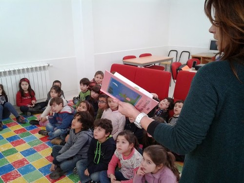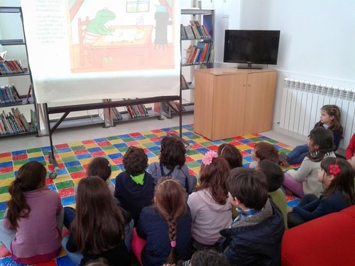 Eu fui a biblioteca de manhã. Eu fui ouvir uma história.